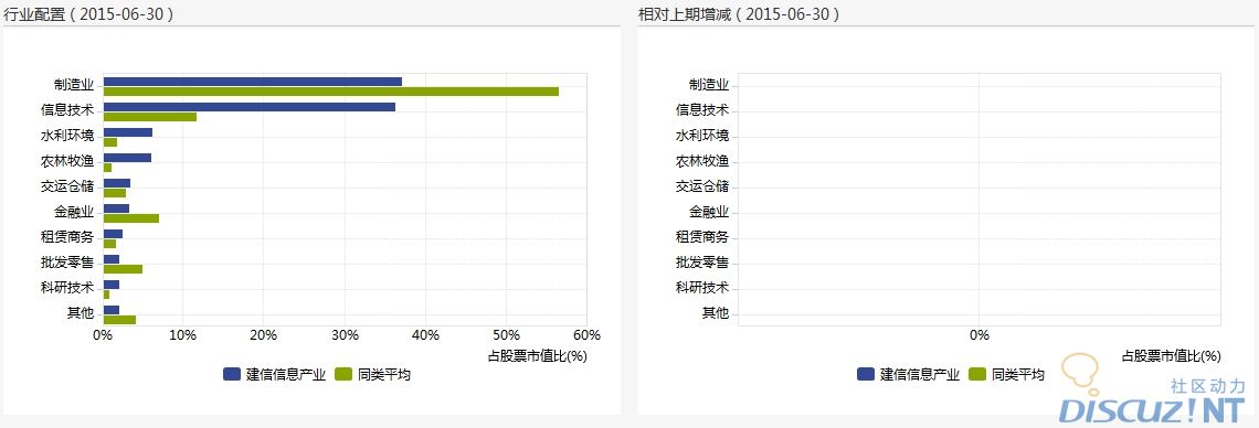 2015年二季度,建信信息产业股票前三大行业配置分别为制造业33.32%,信息技术32.60%,水利环境5.42%,前三大行业集中度为71.34%,比同类平均水平低2.47%。