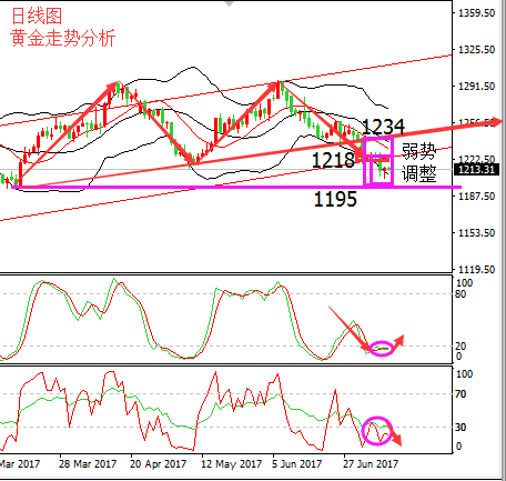 上周非农数据表现上佳,支撑美元指数于96附近,力挫金银市场;不过好景不长,金银这波下跌行情没有进一步延续,金价支撑千二一带,短线走反弹修复调整,从昨日开盘市场动态来看,摩苏尔解放是焦点,中东反恐迎来转折点,引发短线“避险”,“油价热议”投资市场转移至原油方面,这使得金银价格下跌动能减缓,市场需要等待美联储主席耶伦及官员讲话,来重新振奋上周非农数据带来的美好加息前景;另外,欧美股继续飘红,对金银价格依然是利空影响,所以笔者认为昨日周一开盘金银价格短线反弹修复属于正常技术面调整,调整完毕金银价格还会继续测试深跌,关注1200美元/盎司关口;