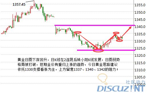 黄金操作建议:金价1330附近做多,止损1325,目标看1338-1340-1342(免费指导微信HJZ7786)