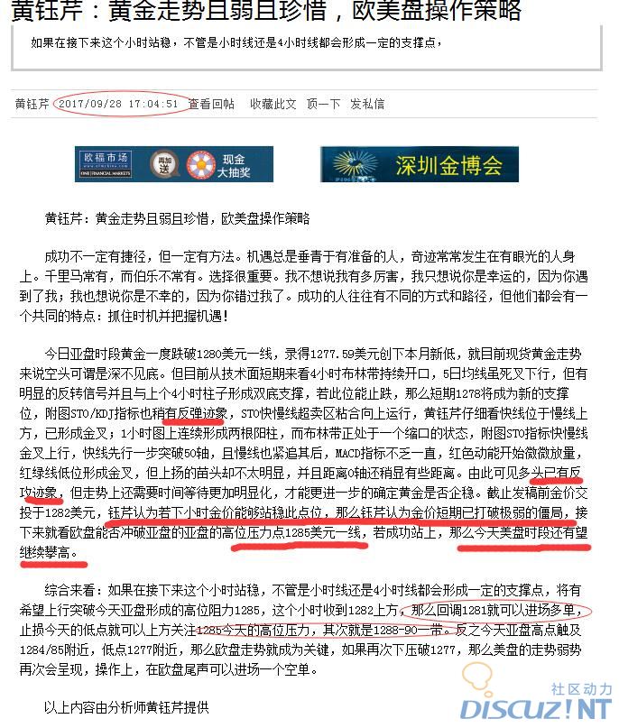 本周现货黄金市场耶伦鹰声缭绕,昨天午后更是一度跌破1280关口,直至1277.59美元一线创下本月新低,市场上都认为多头已毫无还手之力。但黄钰芹并不这么认为,金价在触底后立即反弹,1小时及4小时各快线附图指标均显多头反弹的迹象,具体可看笔者昨日下午的文章《黄钰芹:黄金走势且弱且珍惜,欧美盘操作策略》中明确表明笔者思路顺势而为。
