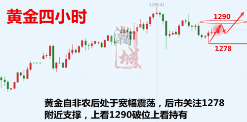 昨日黄金早间自1288开盘后冲高至1290附近,但是比较出乎意料金价下跌,最低跌至1279一线,目前金价一直在1284附近小幅度盘整整理,虽说我们大趋势是看多的。