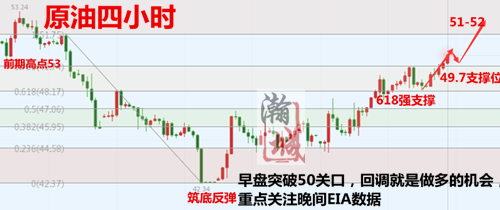 原油操作思路:原油回调51多(激进者现价多),保护50.5,目标51.5-52;
