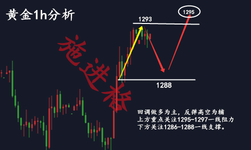 1、下方回调至1284-1286一线做多,止损4美元,目标看1290-1292一线;