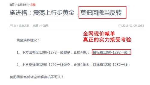 (下图是进格于2019年1月9的文章《施进格:震荡上行步黄金,莫把回撤当反转》完美到达预期1292点位!)