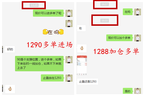 今日操作了黄金空单,原因在早间文章已有说出,今日行情未明的情况下我们操作上还是按照震荡去看待,那么对于震荡行情我们的点位放在了上方的1293,,195,下方的1288,1286,那么今日的高点是在1293.26,低点是1287.44一线,在月园给出的高低点位附近,那么今日月园是错过了上方的空单进场点位,因为那个时间段是亚盘,亚盘冲高到1293小时线是一根有尾阳线,那么月园是分析行情可能还会上冲一阵,结果是行情直接下来了,只能是抓住了一个多单进场点,结果第一个进场点也是没有抓住一个低点,第二个加仓是抓住了一个低点,那么我们是选择在1291一线清仓,因为晚间横盘太久了。薄利,但是做投资嘛,没亏就算是赚了。
