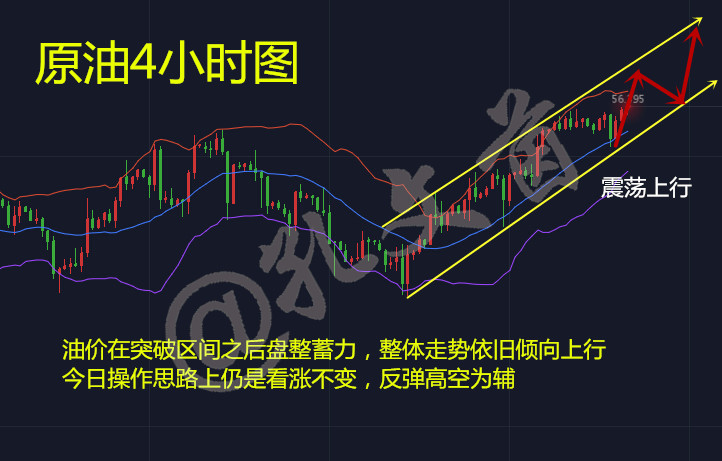 原油晚间操作策略: 56附近多,止损0.5美元,目标57.2美元; 文茵寄语:投资是个长久之计,不是一朝一夕,所以不可操之过急。就算你现在亏损了,那也没什么可怕的,只要选择正确,失去的都会再回来。聪明人总是结伴而行,把握做单时机,掌握行情动向,方可百战百胜。无论成功还是失败,都让我们明白,人生需要一个好的心态。人生的进退,生活的好坏,有时取决于我们的心态,努力是一种结局,放弃也是一种结局。只是不同的心境,有着不同的结果,你笑天是蓝的,你哭天是阴的。学会投资,需要一个好的心态,走好人生,需要一个好的心境,心态有时决定着你投资的成败。 文/孔文茵(指导唯心 kwy1633)