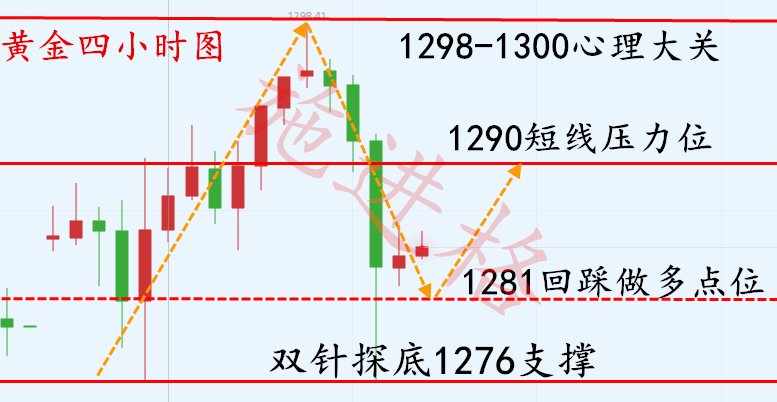 早盘现价1289/90附近先空,止损1293,目标1279。