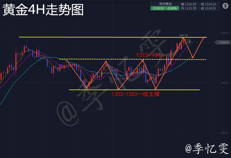 2.上方反弹至1328-1330一线做空,止损4美元,目标看1322-1324一线